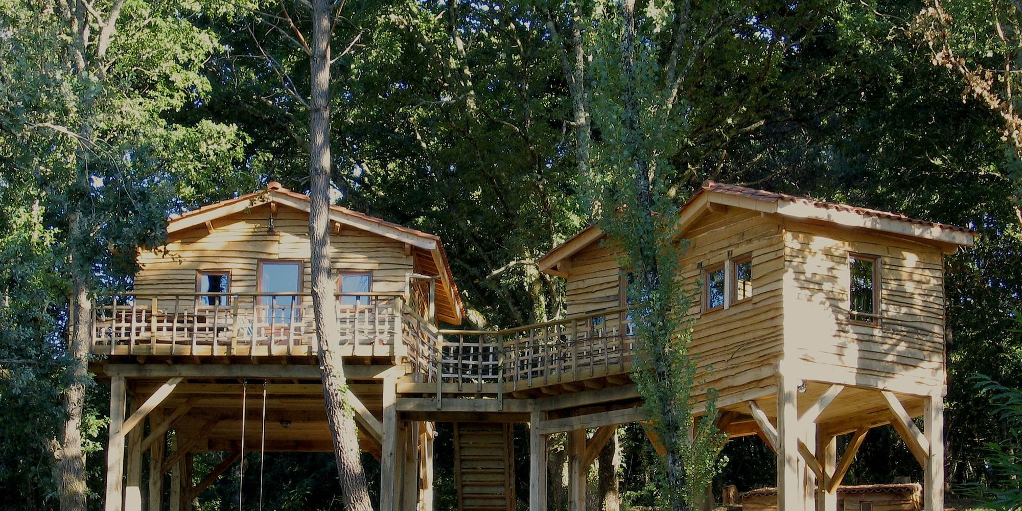 et des constructions des plus grands, les Cabanes du Tertre, juchées sur pilotis au milieu des arbres, dominent la Vallée de la Dordogne.